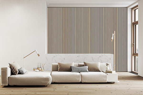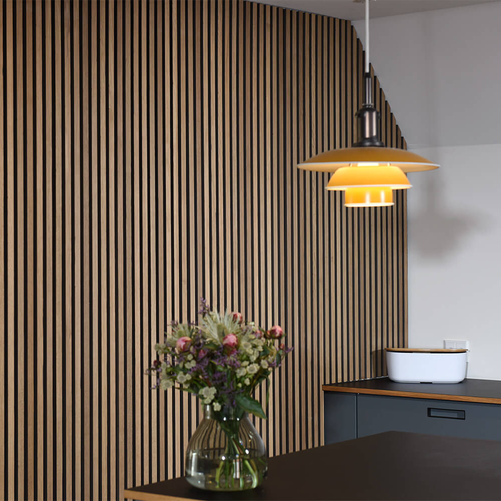 Akoestische wandpanelen zijn stijlvolle lattenwanden die de akoestiek verbeteren. De geluidsabsorberende akupanels verminderen de storende galm in huis.