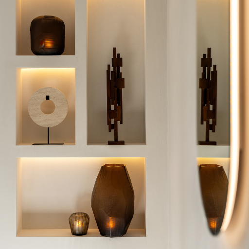 Met haar gouden regel van de 3 G’s: grof, grafisch en glans creëert ze diepte en karakter in elk interieur. Deze stijl ademt rust, luxe en balans, en laat zien hoe subtiele contrasten een ruimte tot leven kunnen brengen.
