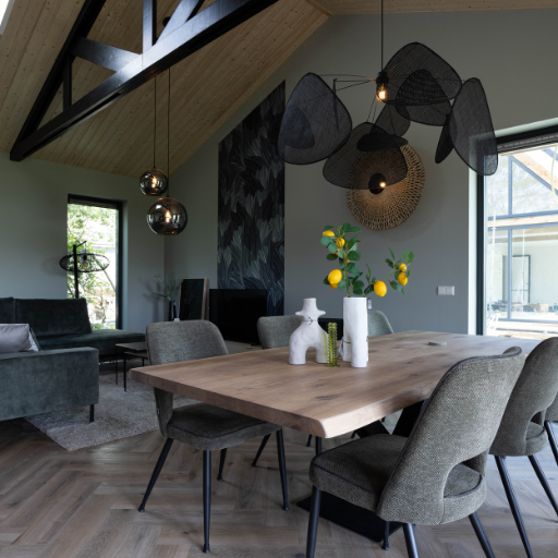 De woonstijl Modern Industrieel brengt stoer design en warme materialen samen in een tijdloze combinatie. Denk aan donkere houtsoorten, visgraatvloeren, zwarte details en goudkleurige accenten die zorgen voor contrast en karakter.